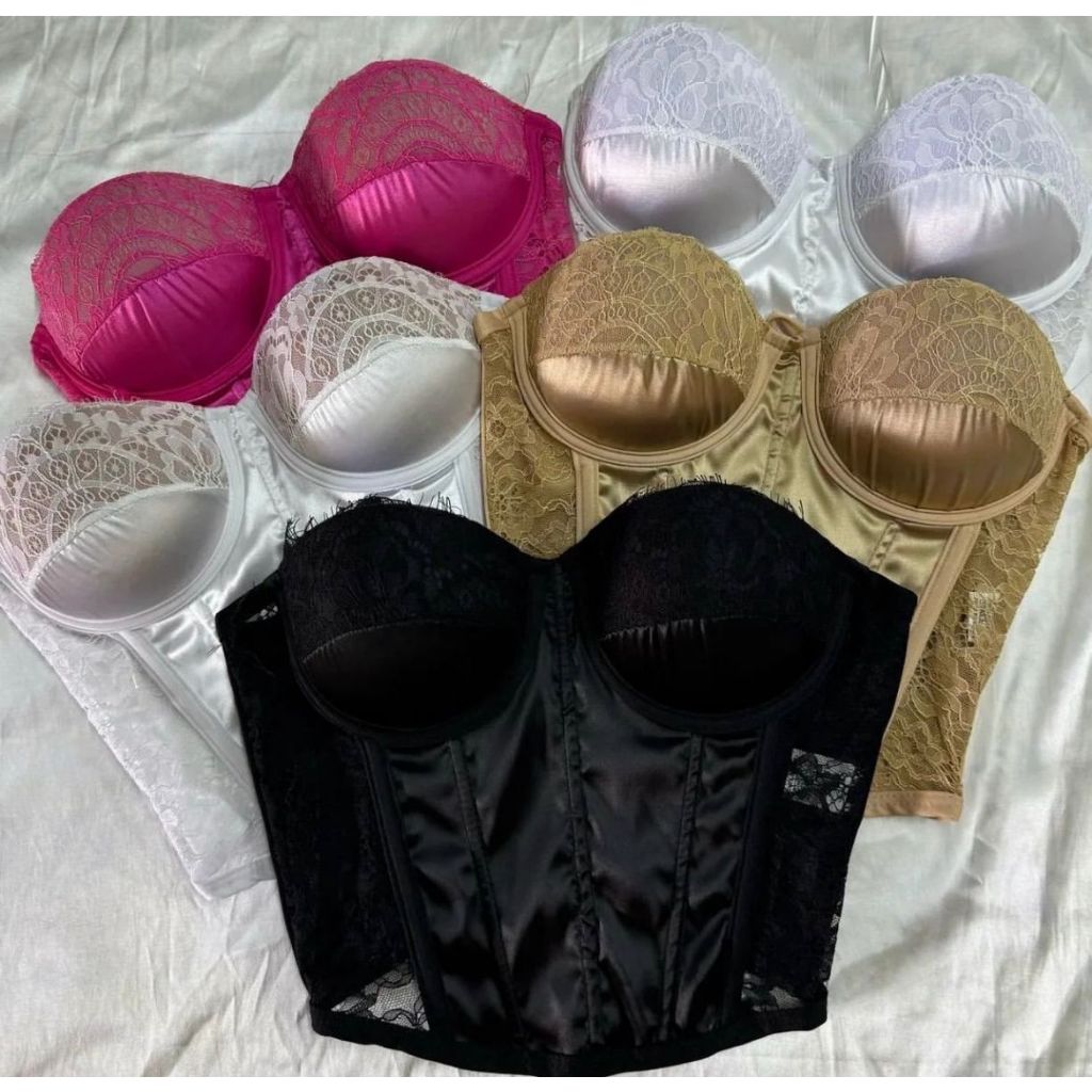 Cropped Corset Acetinado e Renda Tomara que Caia