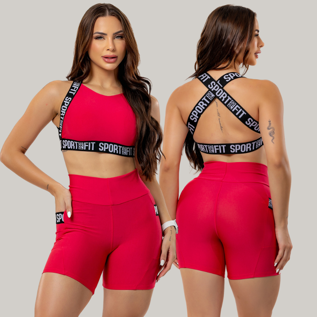 KIT 3 Conjunto Fitness Top e Short New Zig 3D Serra e Mar Roupa para Academia Moda Fitness