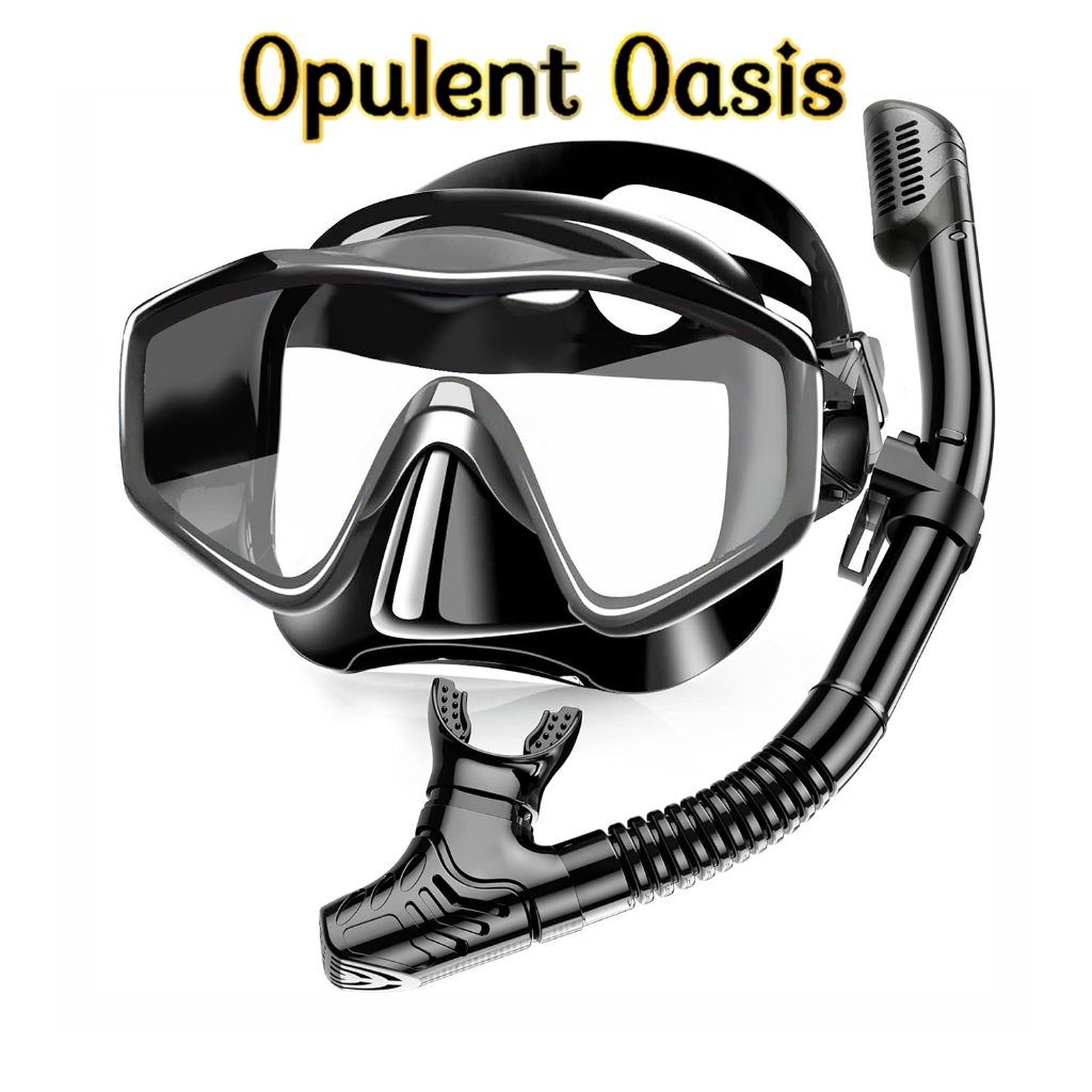 Opulent Oasis>>Equipamento de mergulho com snorkel para adultos Conjunto de máscara de mergulho com snorkel seco Óculos de natação com snorkel Protetor nasal