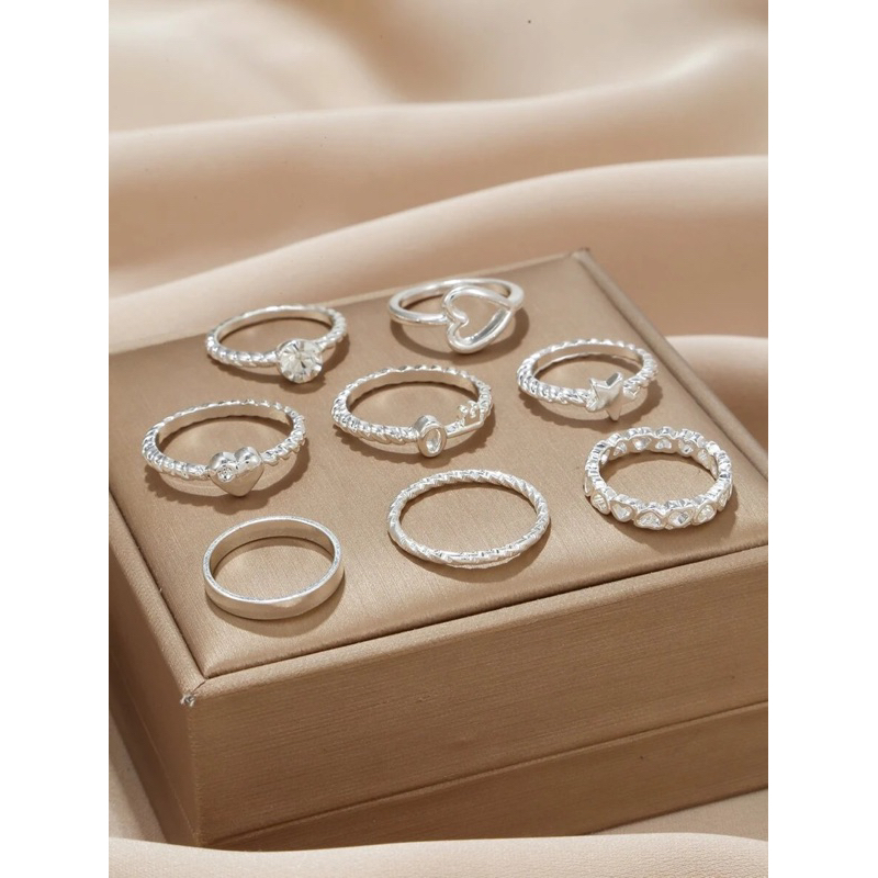 Anel Prata Kit 8 peças Moda Feminina Pronta Entrega Acessórios Elegantes Alta Qualidade Promocional