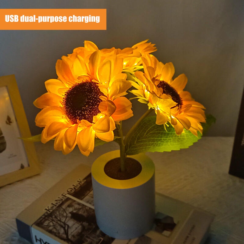 Simulação De Luz Nocturna Led Girassol Recarregável Lâmpada De Mesa Decorativa Flores