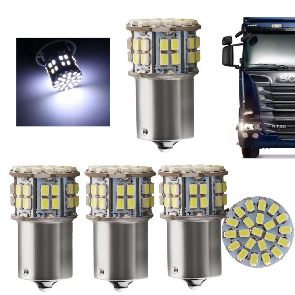 Kit 4 Lampada 50 Led Ba15s 1 Polo P21w 1156 1141 Branco 24v