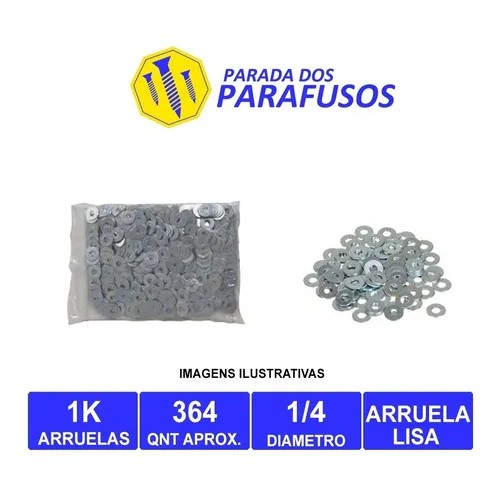 Arruela Lisa Zincada 1/4 Pacote 1kg +/- 364 Peças Jomarca