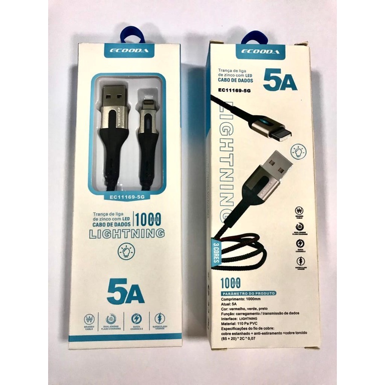 Cabo Lightning 5A Iphone com Led Ecooda EC-11169-5G -1 metro