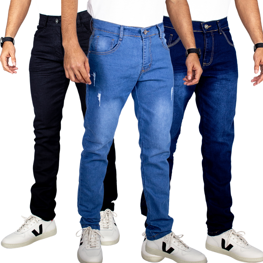 KIT 3 Calças Jeans Masculina Premium Skinny tradicional Basico com Lycra