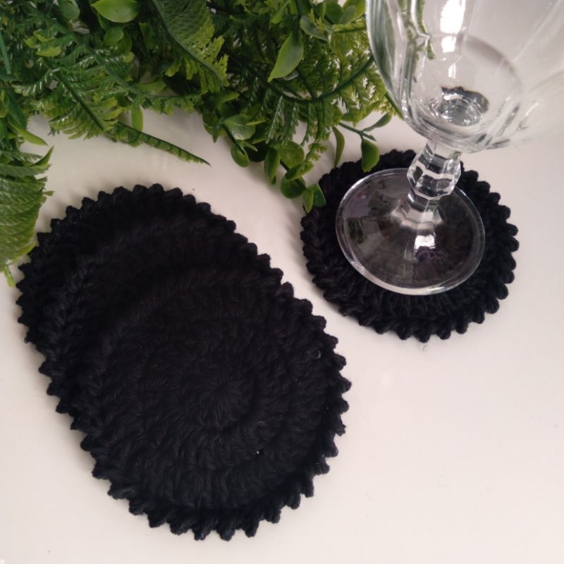 Kit com 4 ou 6 porta copos preto descanso de copos de crochê decoração de mesa posta
