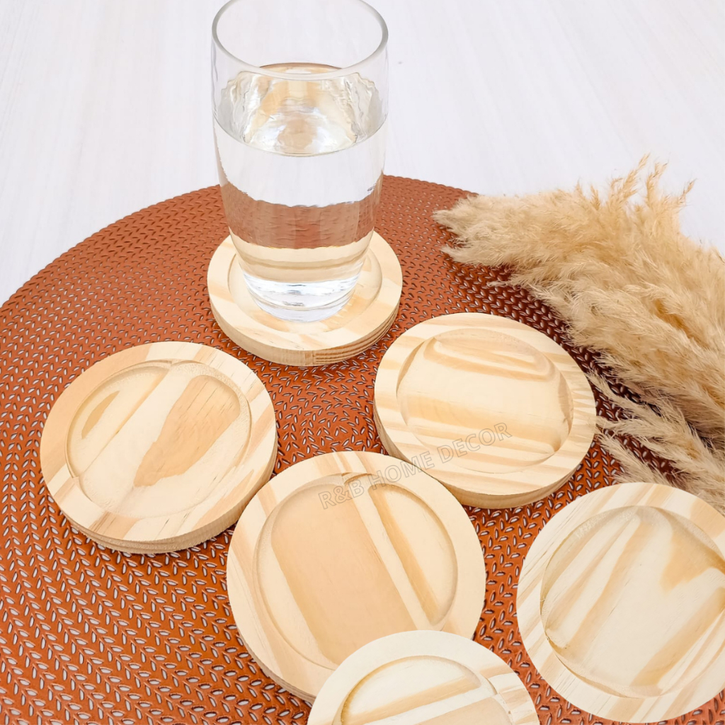kit com 6 Porta Copos Pires Redondo Madeira Maciça De Pinus cozinha decoração