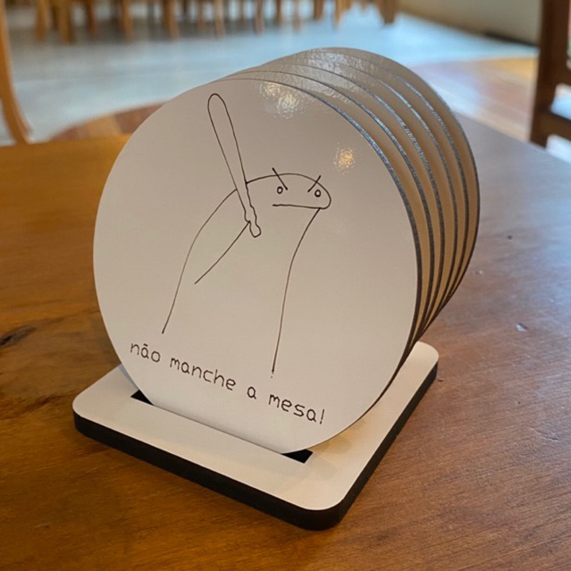 Kit com 6 Porta Copos - Descansos de copos - "Não manche a mesa" - MEME Flork - MDF 3mm com suporte em MDF 6mm - Design