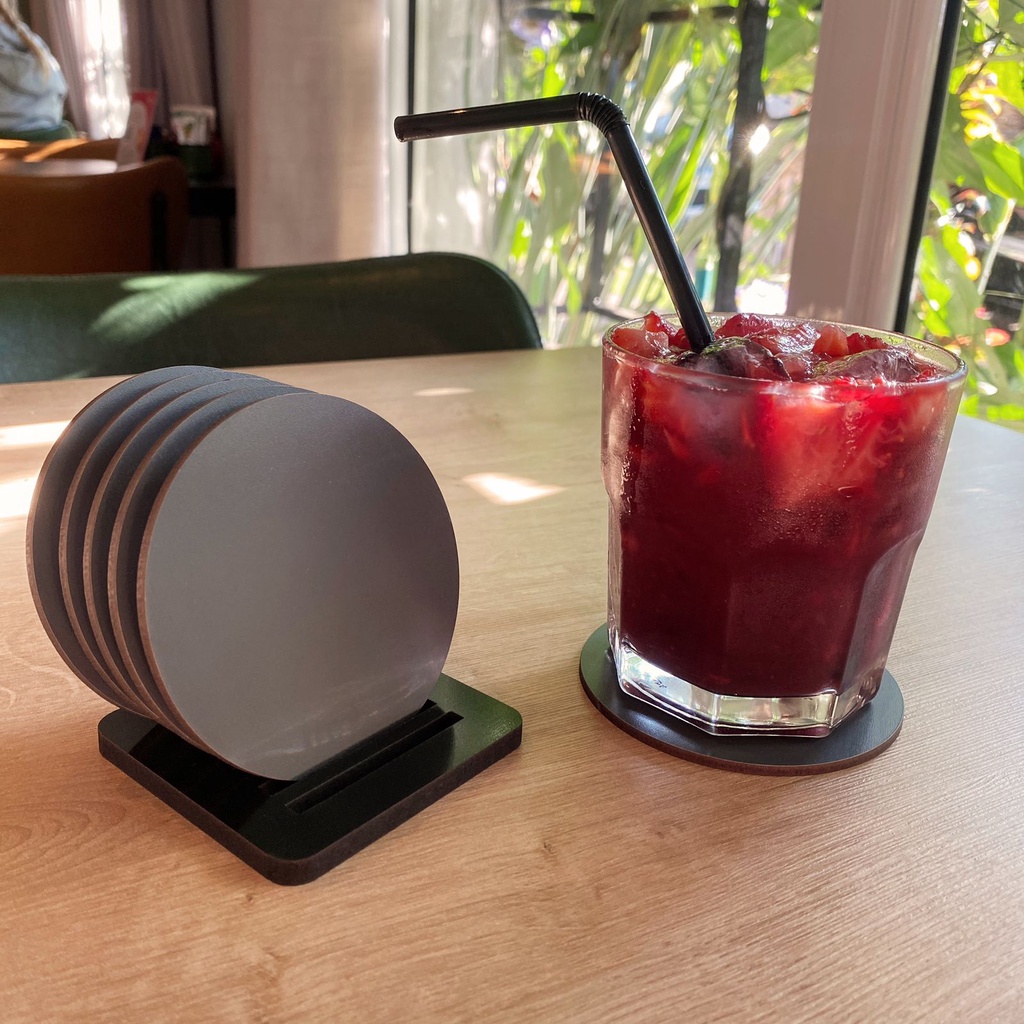 Kit de Porta Copos Minimalista Cinza com Suporte - 6 Unidades
