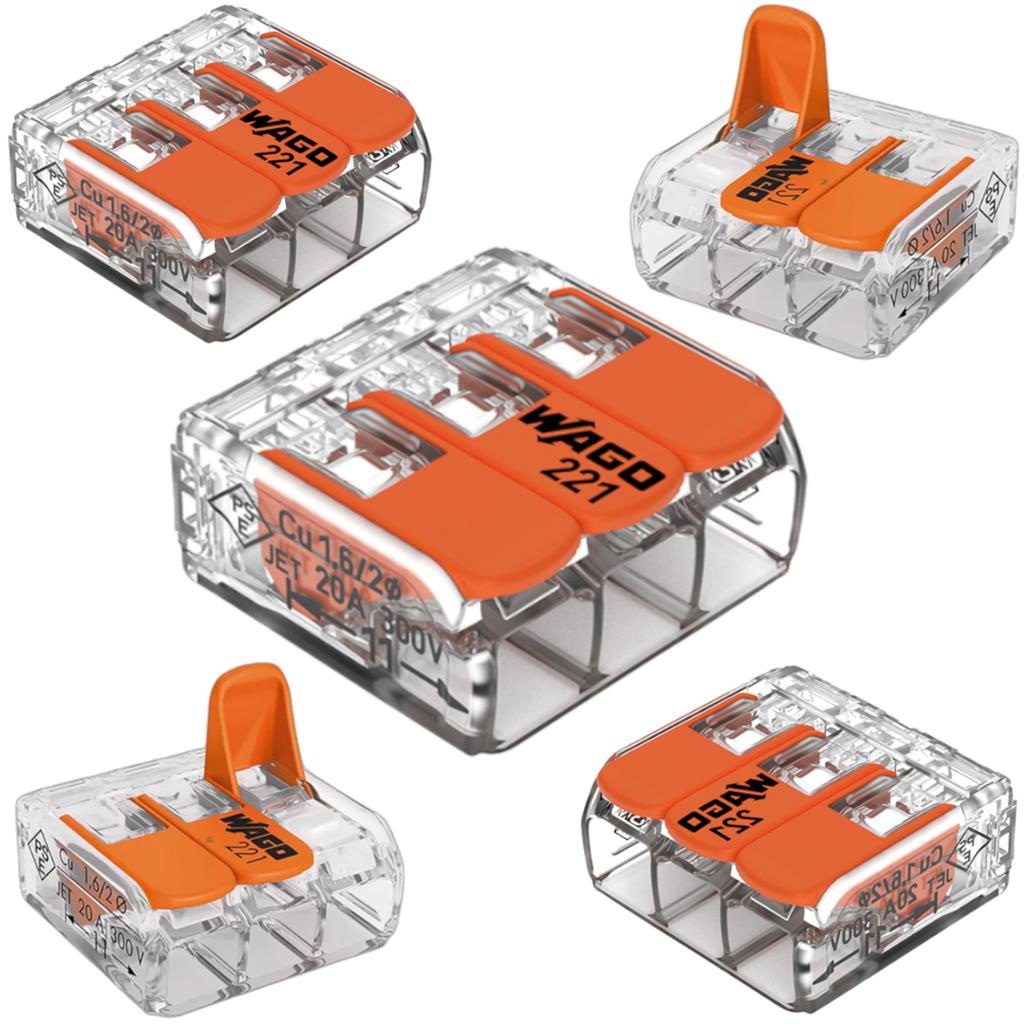 Kit Conector Elétrico Emenda Fios Reto 4mm² Wago Linha Com Alavanca Todos Tipos De Condutores 221-2411