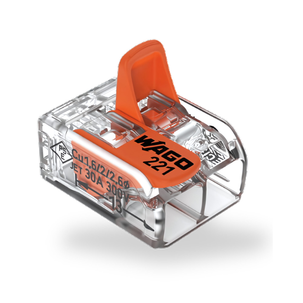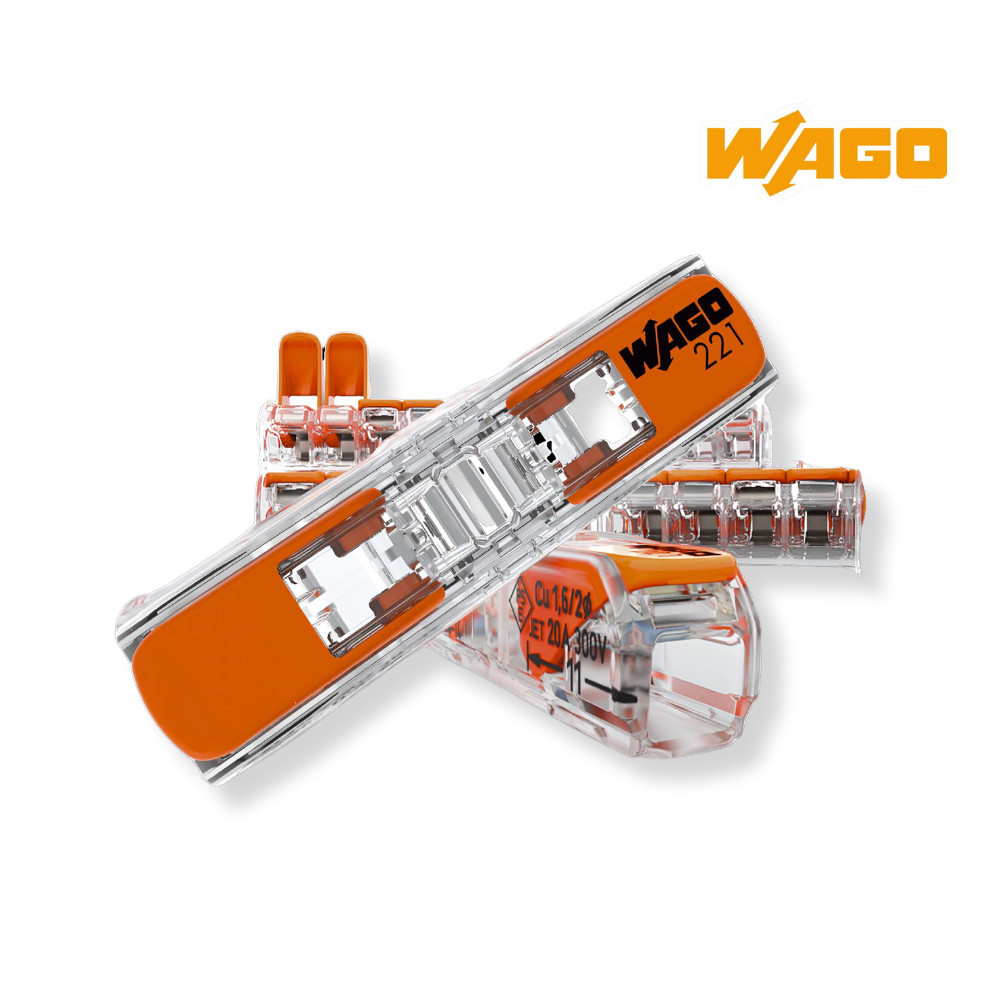 Kit Conector Emenda Para Fios Elétrico 2 Polos Flexível 0,14 – 4,0 mm² 32A Wago Isola Compacto 221-412