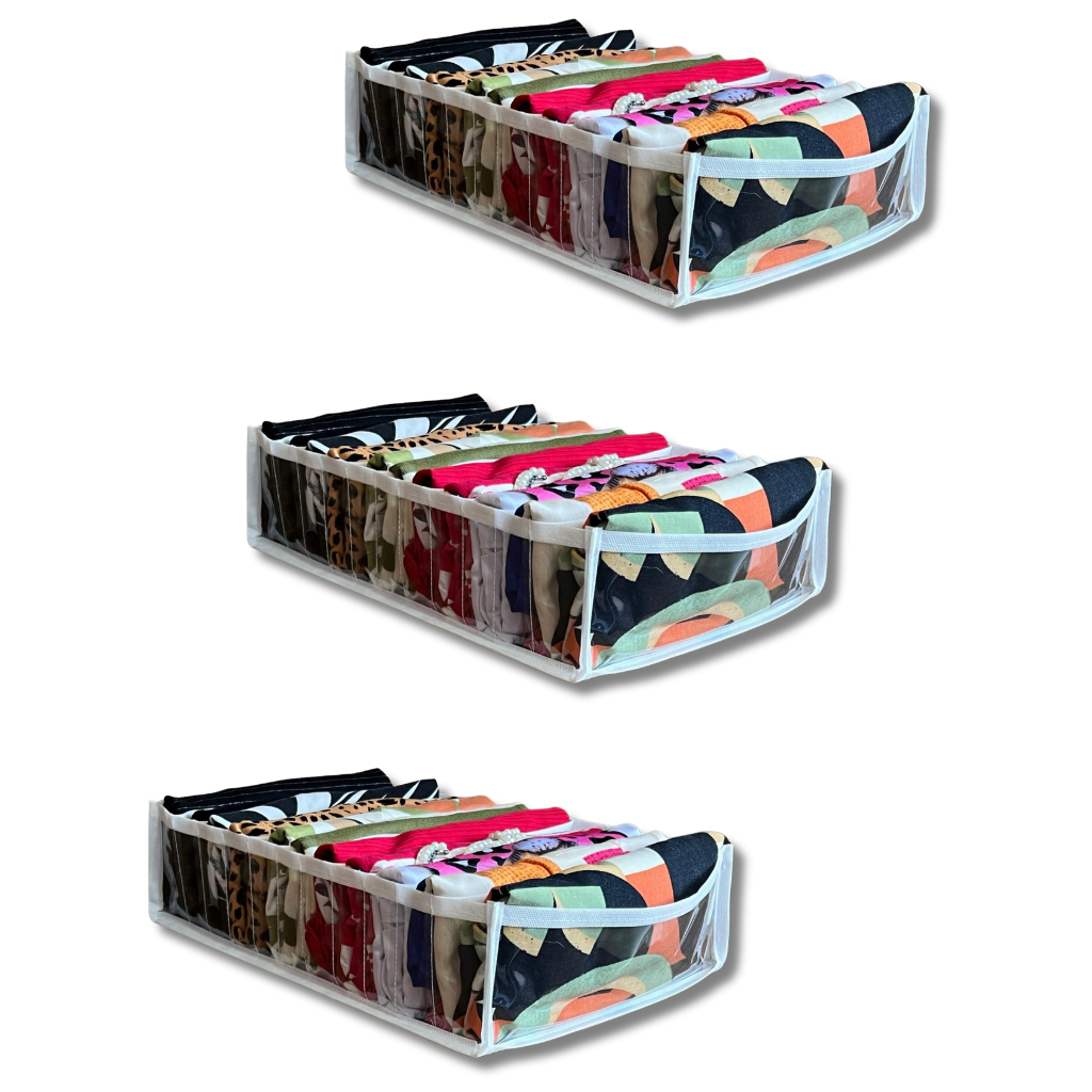 Kit 3 Colmeia Organizadora De Gaveta e Armários em Nylon Transparente Para Calcinhas Cuecas e Meias Com 7 Divisórias