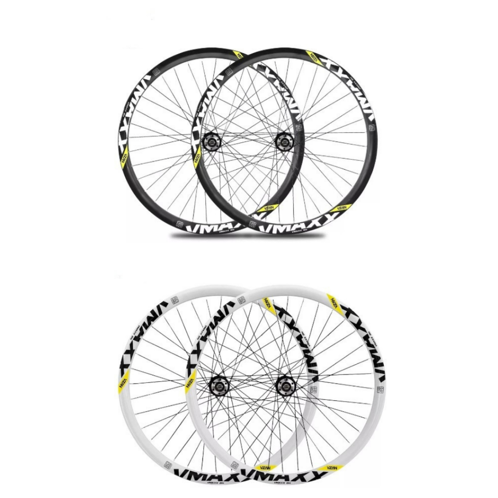 Par 2 Aro Vzan Vmaxx Branco Aro 26 Parede Dupla Reforçado Dh Paredão Para Freio A Disco + Raios Finos Pretos + Cubos Aço 36F Esferado Com Eixo Porca Par Roda + Freio a Disco MTB com pinças e disco dianteiro e traseiro Com Pastilhas