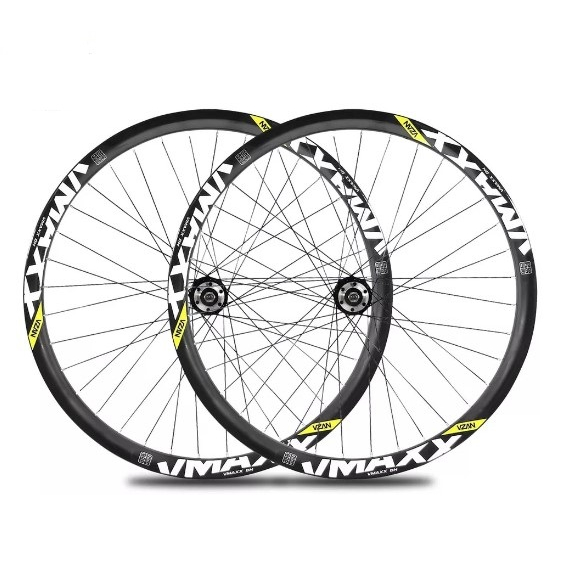 Par 2 Aro Vzan Vmaxx Aro 26 Montado Parede Dupla Reforçado Dh Paredão Para Freio A Disco + Raios Finos Pretos + Cubos Aço 36F Esferado Com Eixo Porca Par Roda Montada