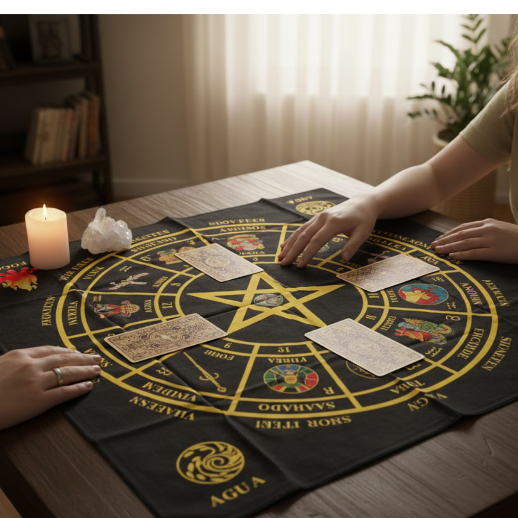Toalha de Tarot Pentagrama 1x1m - Tapete Mesa Tarot Elementos Espiritual