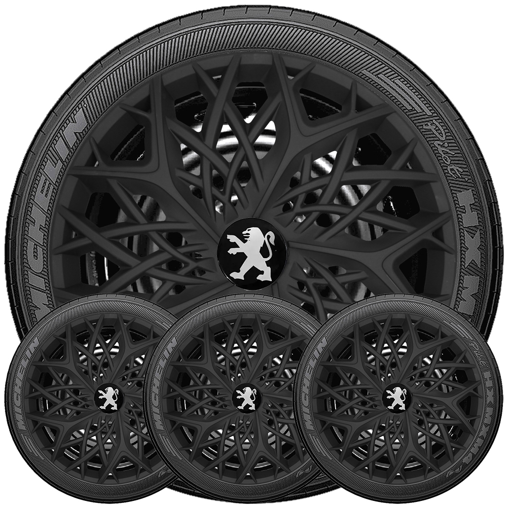 Jogo 4 Calotas Aro 13 14 Esportivas Linha Moove Preto Fosco Compativel Com 207 206 208 307 406