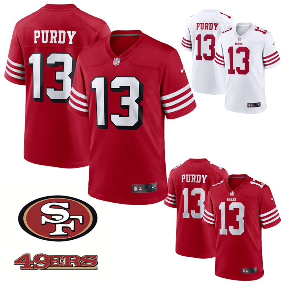 GJ9A Mens Jersey Francisco 49ers 13 Brock roxo Nome do Jogador Bordado Futebol Americano