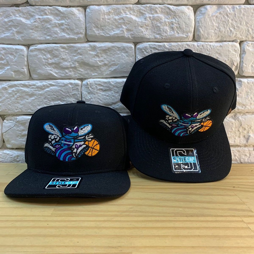 Boné Charlotte hornets NBA retrô preto bordado com regulagem snapback