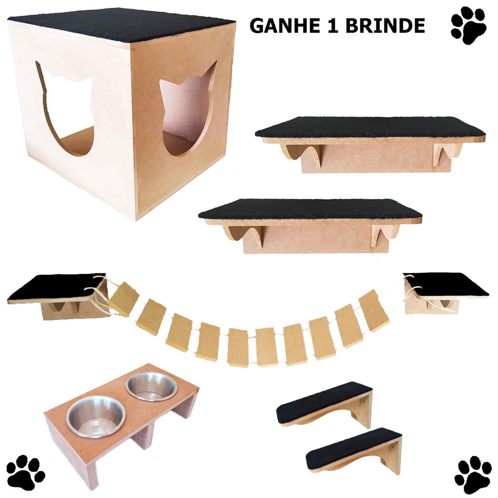 Playground Gato 8 peças Enviado Montado Mdf Nicho para Gato Prateleira Ponte e Degrau Linha Petshop