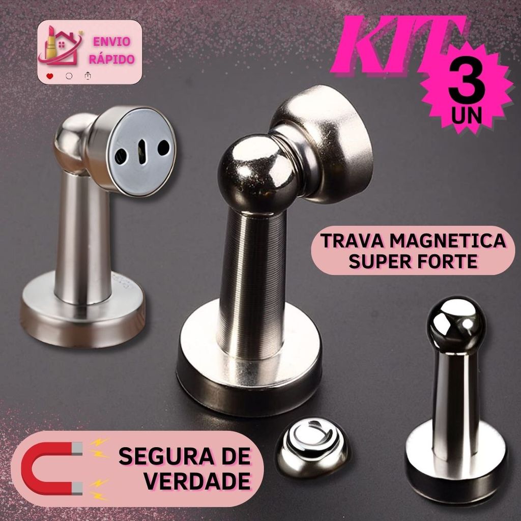 Kits 3/2 e 1 Un Trava Magnética Porta Imã Forte Não Deixa Bater Aço Inox Premium