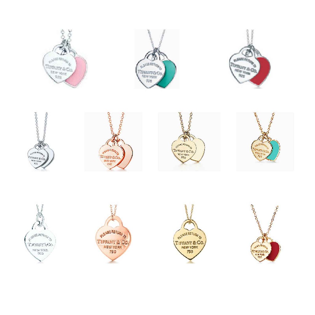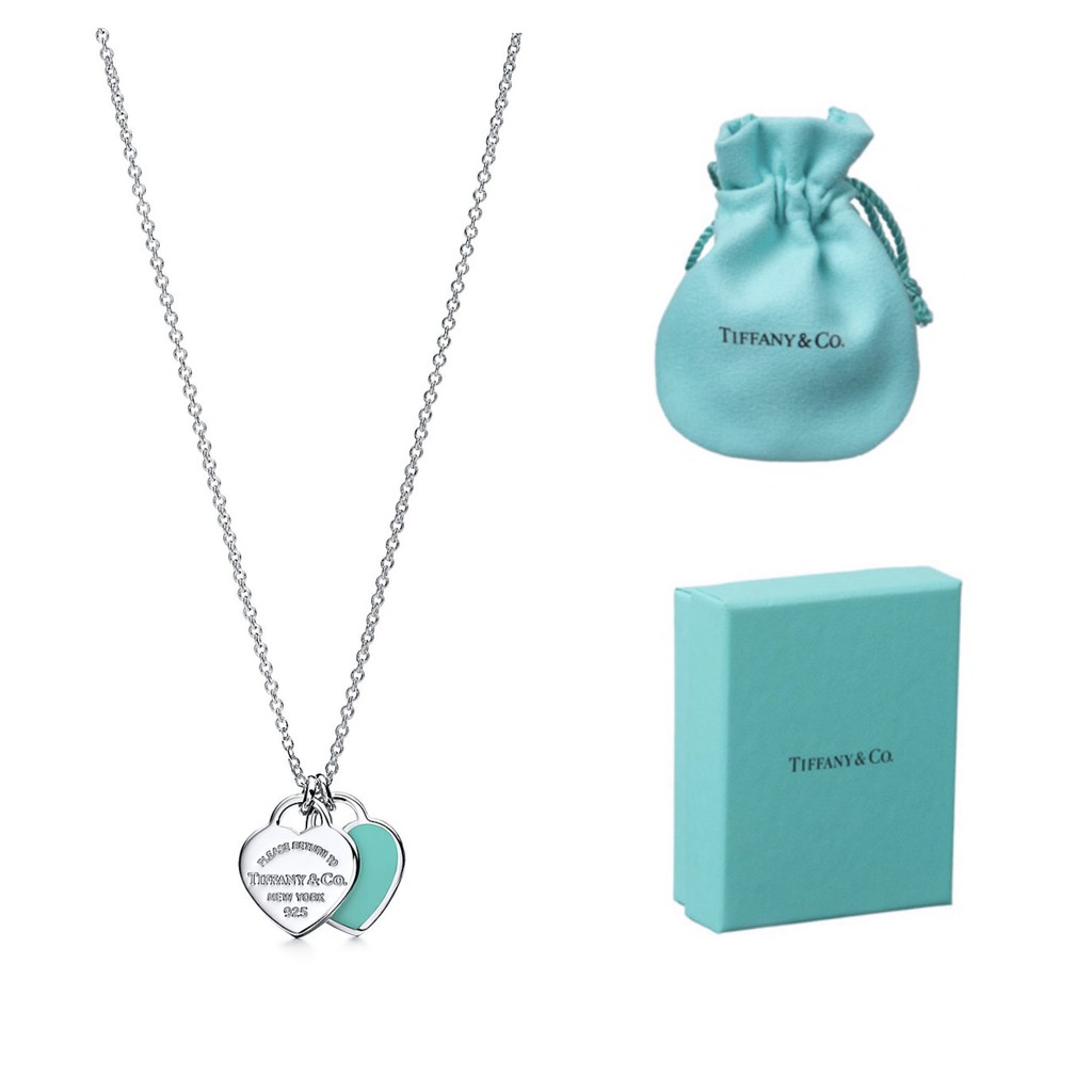Colar Coração Duplo Azul Tiffany + Caixinha e Saquinho de Veludo