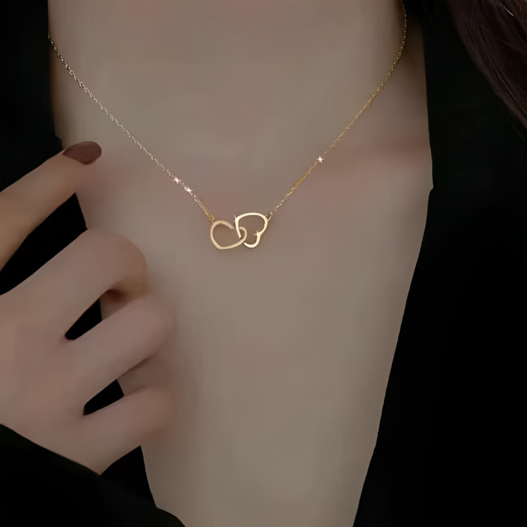 Colar de Coração Duplo de Moda Colar de Coração Presente