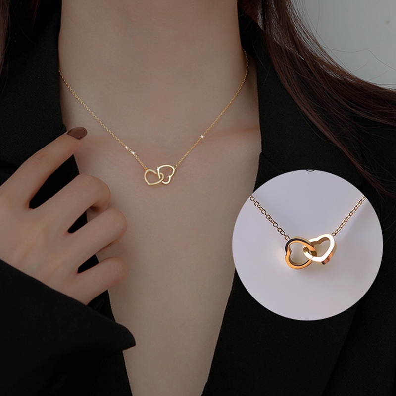 Xl Colar Feminino De Corrente Com Pingente De Coração Duplo EM Aço Inoxidável