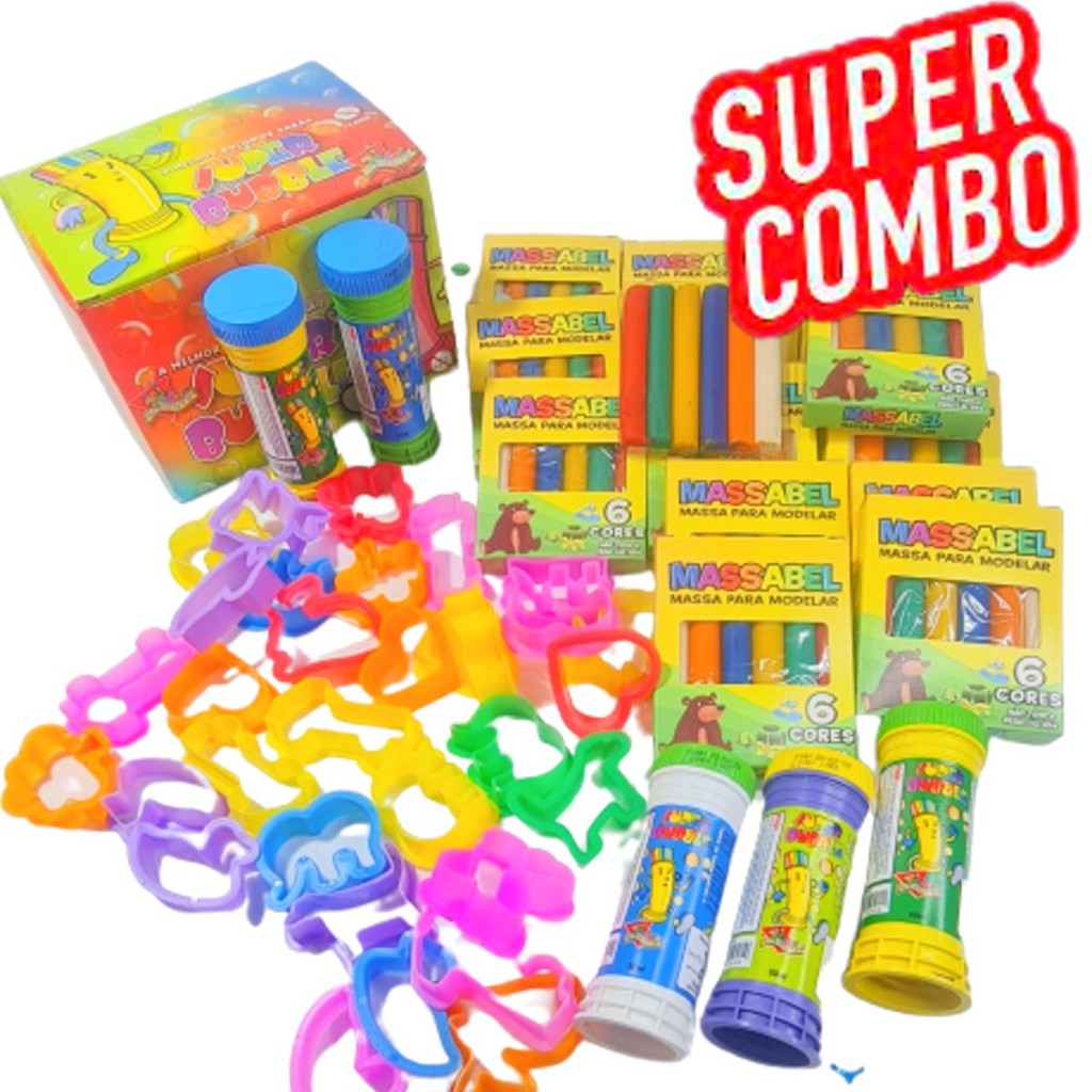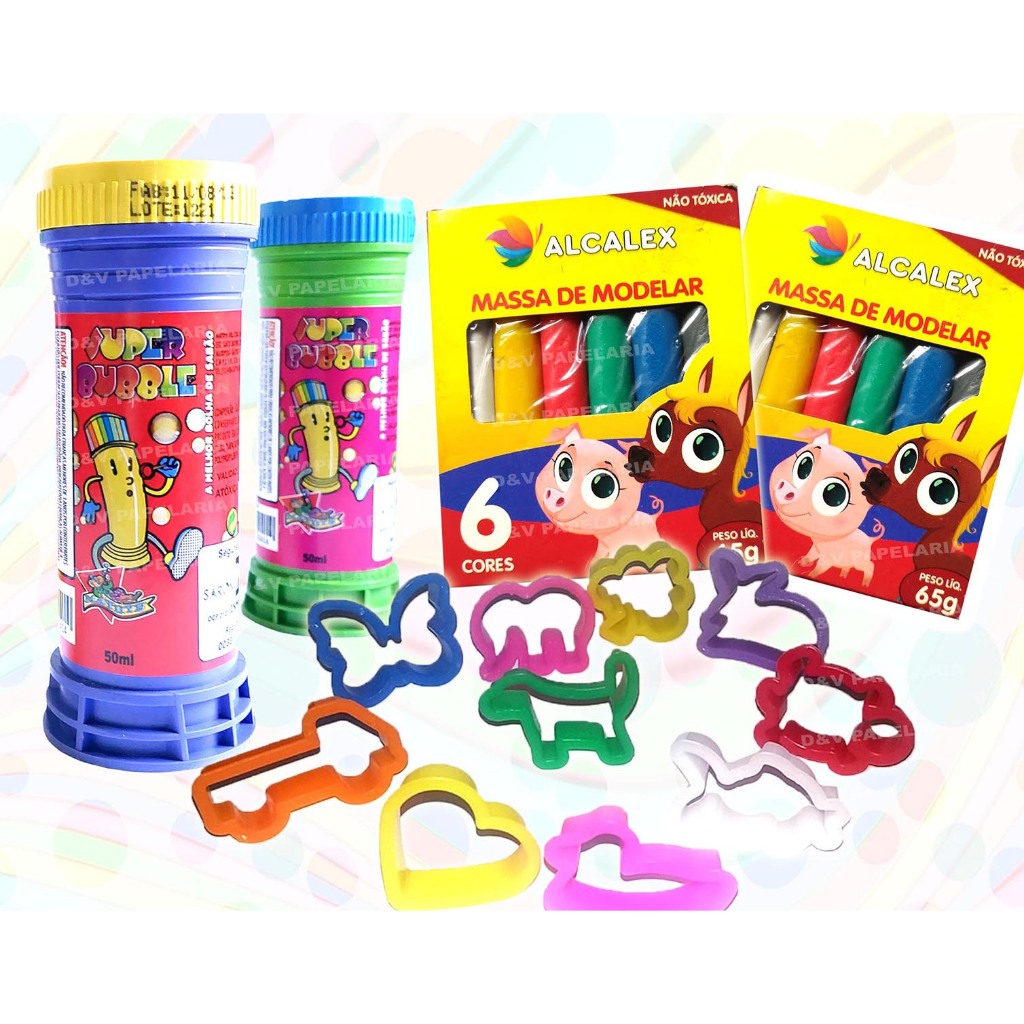Kit 15 Cx Massinha de Modelar + 15 Bolha Sabão + 15 Cortador Molde Forminha Kit Festa Lembrancinha Infantil