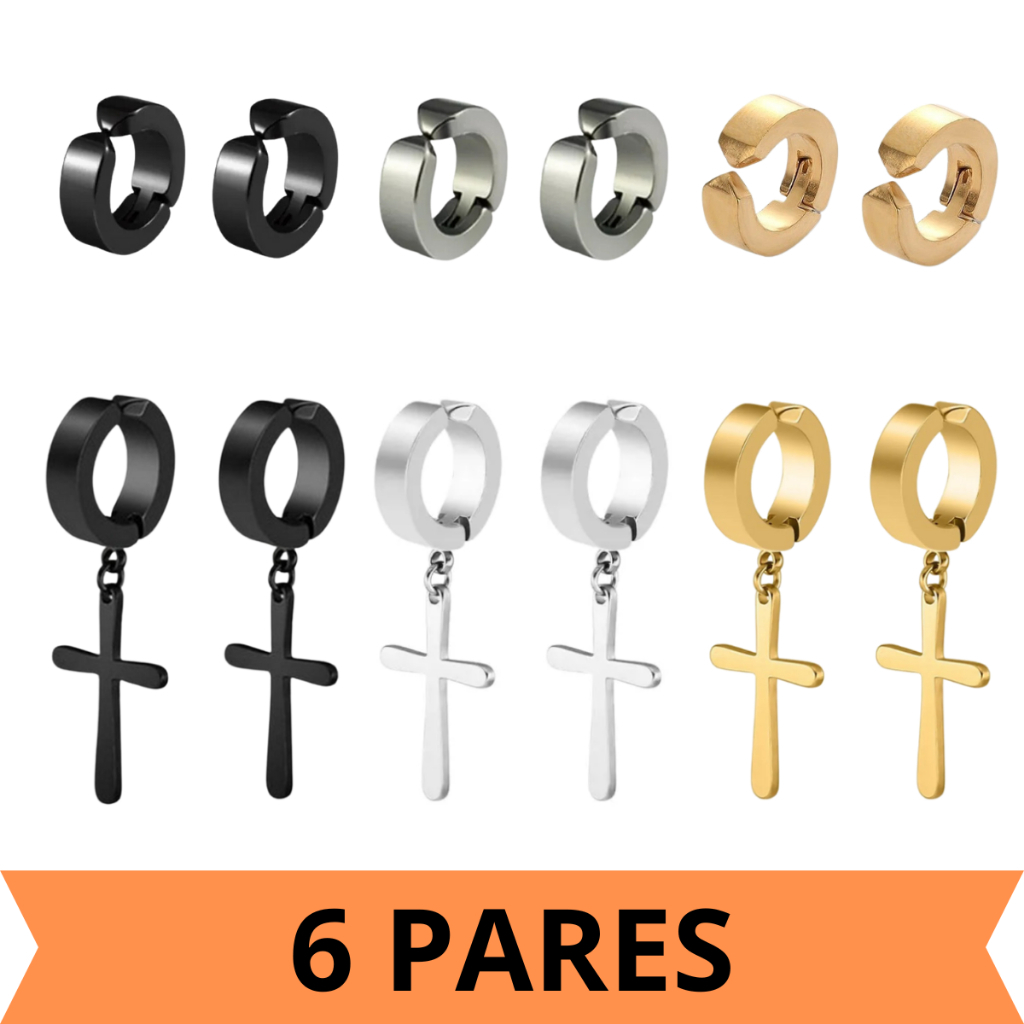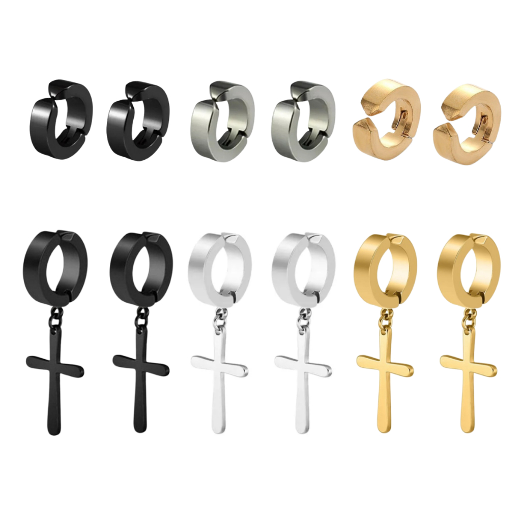 Kit 3 Pares Brinco Brincos Masculino Feminino Argola Em Aço Inox Cruz Crucifixo De Pressão não precisar de Furo