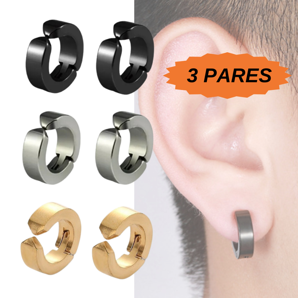 Kit 3 Pares Brinco Pressão Aço Inox Antialérgico Unissex Brinco Pressão Masculino