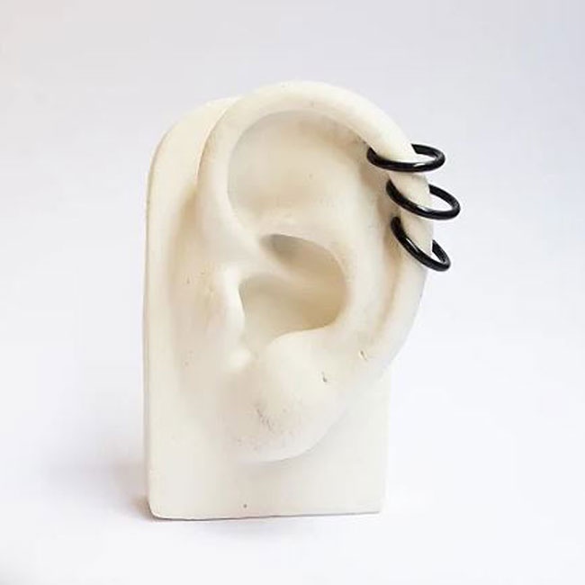 Kit Piercing Brinco Preto Fake Pressão Cartilagem Orelha Aço Inox Antialérgico 3 pçs