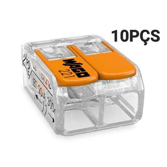 Kit 10pçs Conector Emenda WAGO P/FIOS E CABOS 2 Polos 221-412 de 0 a 4mm² até 32A. ORIGINAL 2 vias.