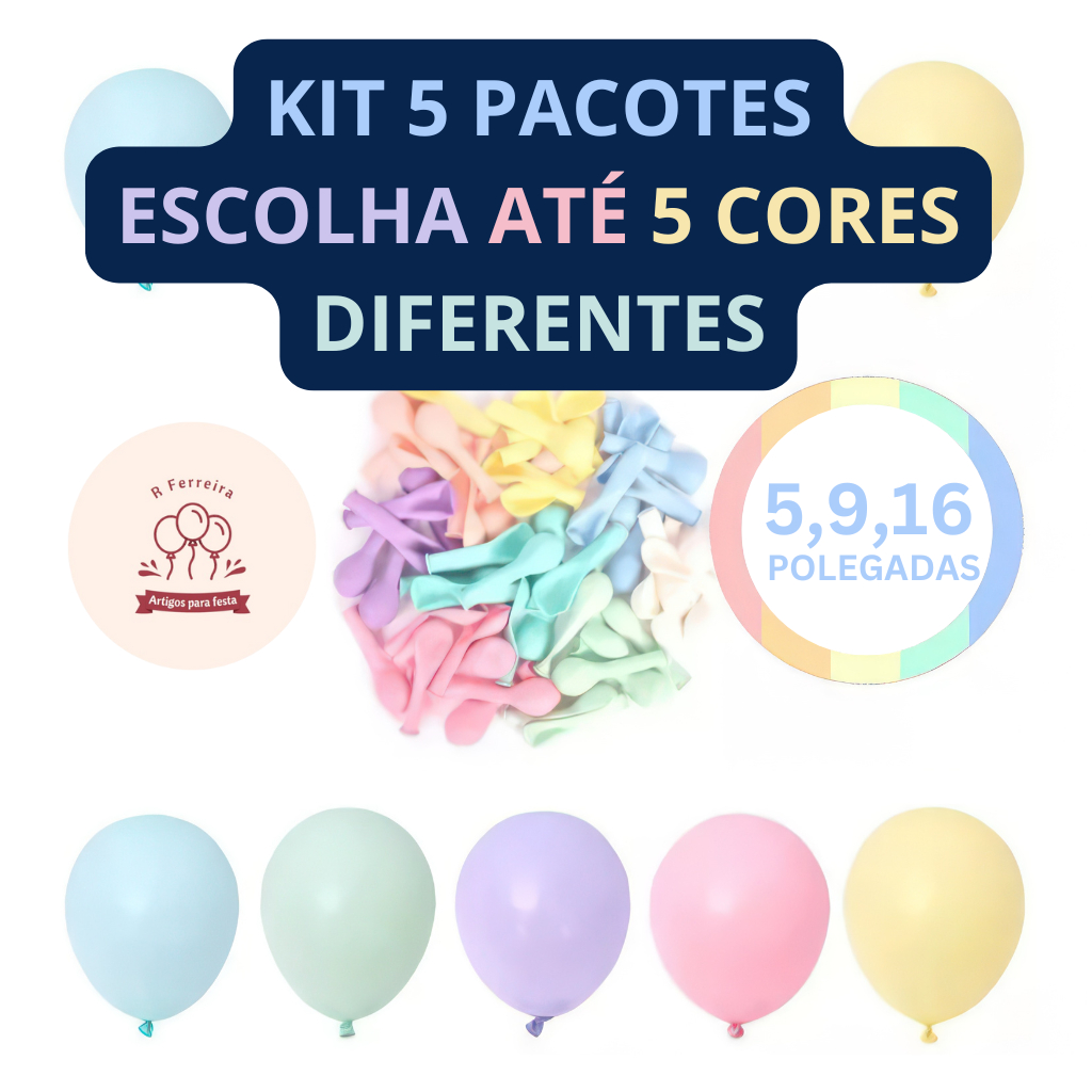 Kit 5 Pacotes Balão Bexiga para Festa Candy Color 5", 9" e 16" PicPic Cores Pastéis