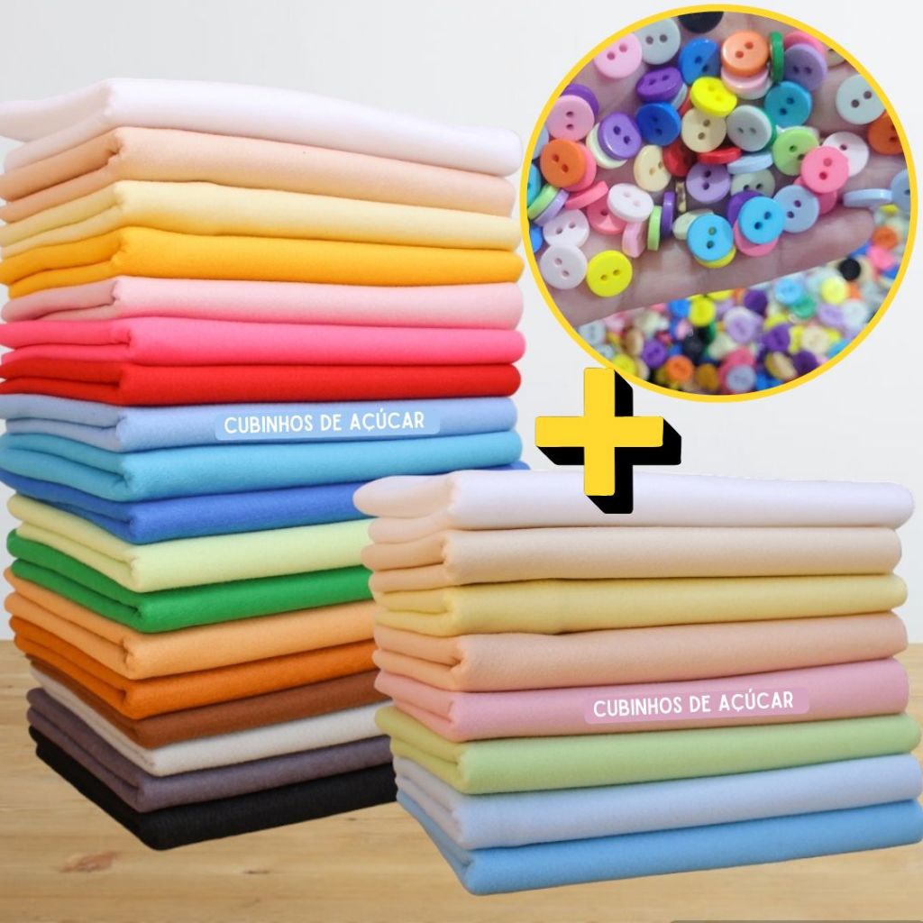 Kit 18 Cores Feltros + Tons Candy Color + 100 Botões 8mm - Santa Fé Costura