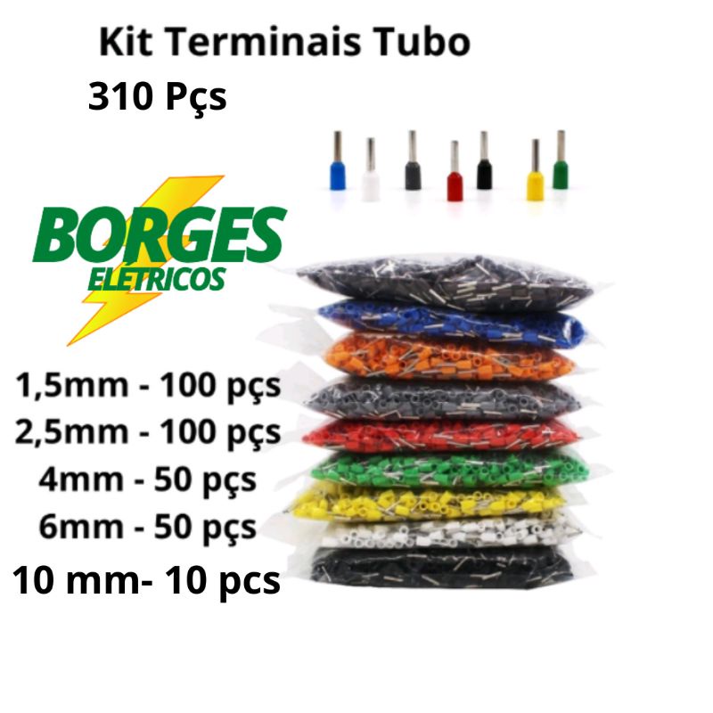 Kit 1200 Peças Terminal Tubular Ilhos Até 10mm Variados ou Kit 400