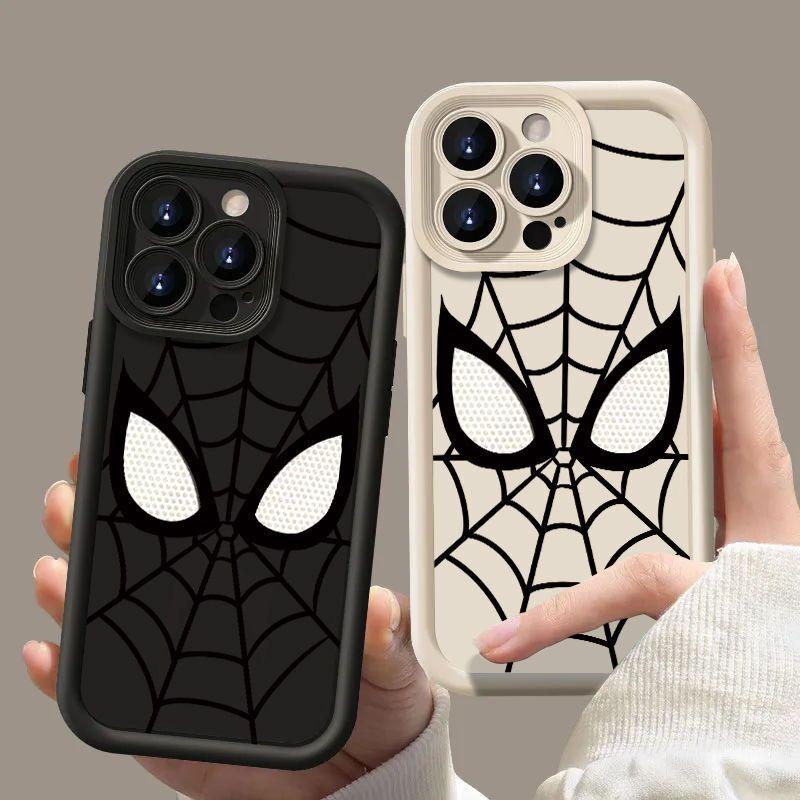 Capa Para IPhone 15 14 13 11 12 Pro Max XR X XS 7 8 6 6S Plus SE 2020 2022 7 + 8 + Carcaça De Silicone Olhos De Homem-Aranha Frio Cartoon Proteção Fofa Da Câmera À Prova De Choque