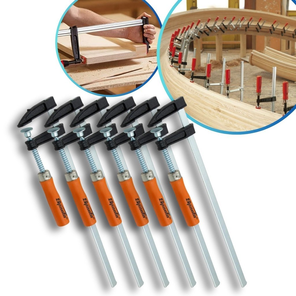Kit 6 Grampo Sargento Tipo F 14pol 35cm 63kg Ajuste Aperto Rápido Descerrar c/ Cabo de Madeira P/ Carpinteiro