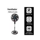 Ventilador chão alto e potente preto com 6 pás de plastico, 48 cm de diâmetro 60 Hz 127 V