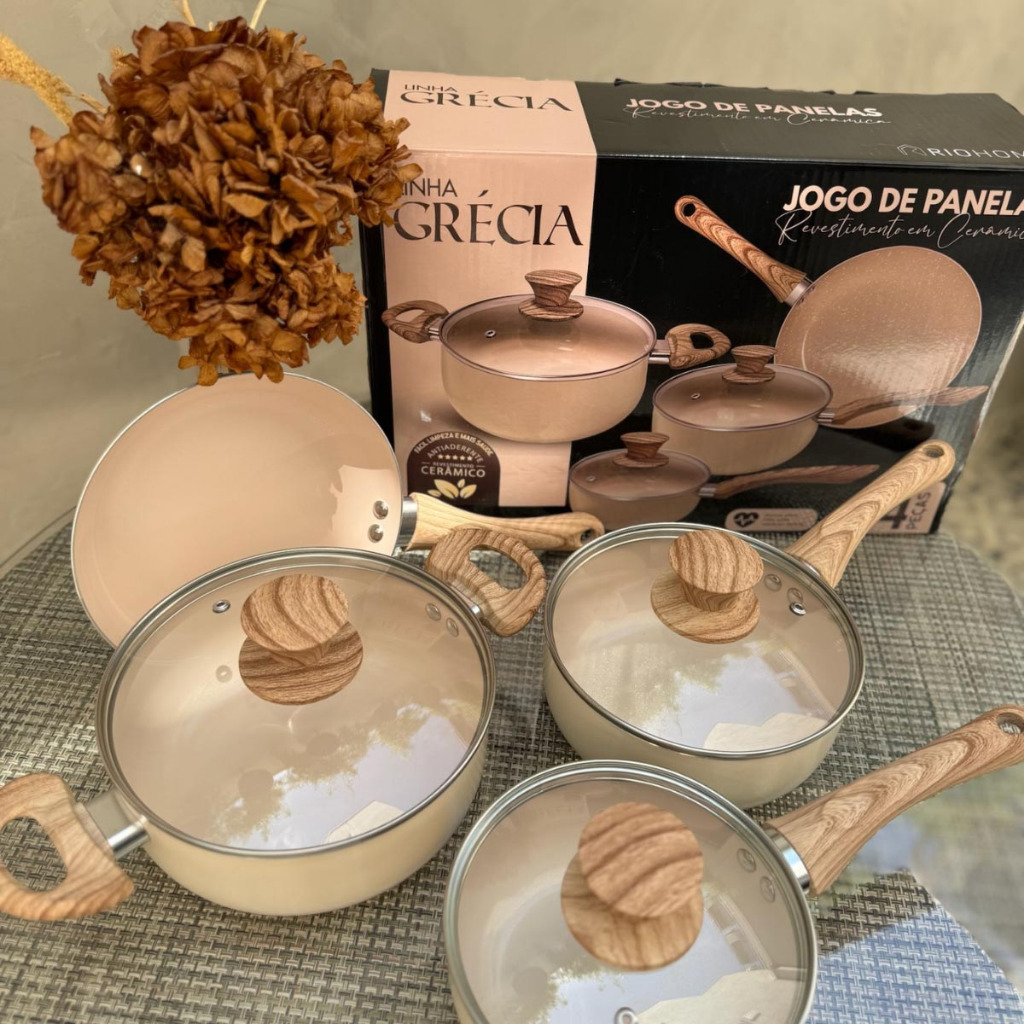 Jogo de panela 5 peças ceramica antiaderente não gruda frita sem óleo Mimo Style Sartin Cook