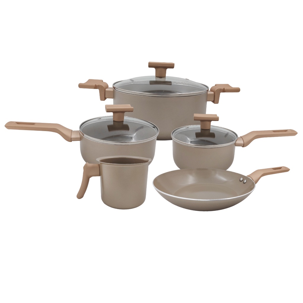 Jogo de panela antiaderente indução 5 peças revestimento ceramica não gruda fundo triplo de indução Grafito Mimo Style