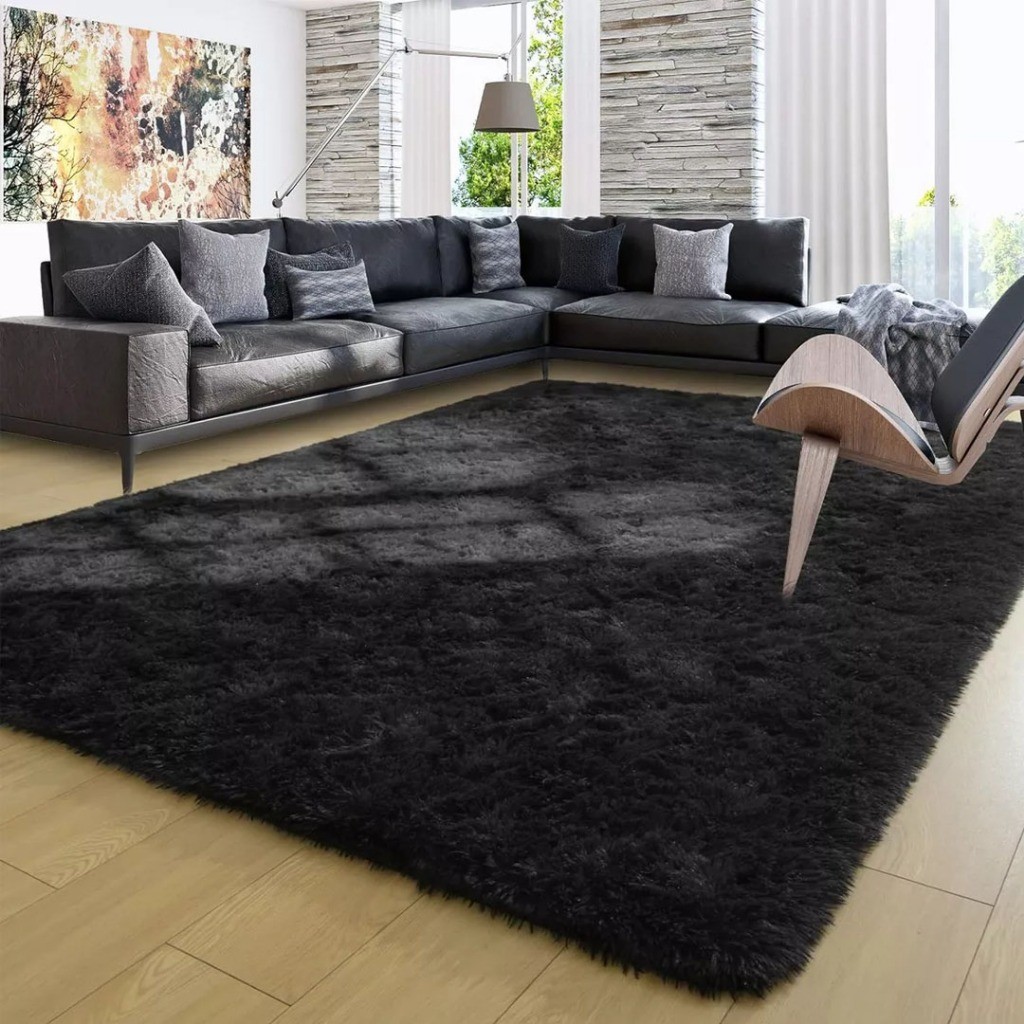 Tapete Felpudo , Peludo Para 2,00x1,50 Quarto e Sala Preto