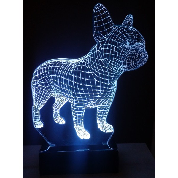 Luminária Led 3D Abajur Bulldog Frances Display Led Rgb