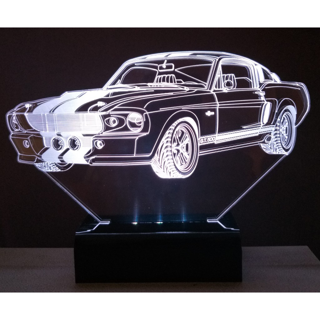Luminária Led 3D Mustang Gt500 3D Abajur Led Rgb - Shelby Cobra