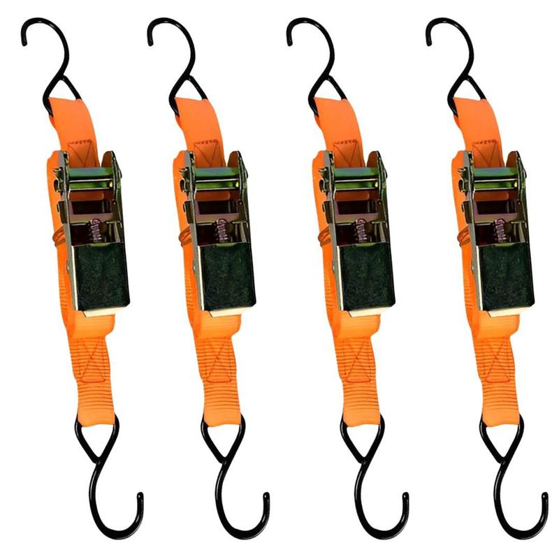 Kit 4 Cinta e catraca de segurança Amarração 100KG com fita de 4,5metros Rabicho Fixação de Carga 2,5cm para Veículos