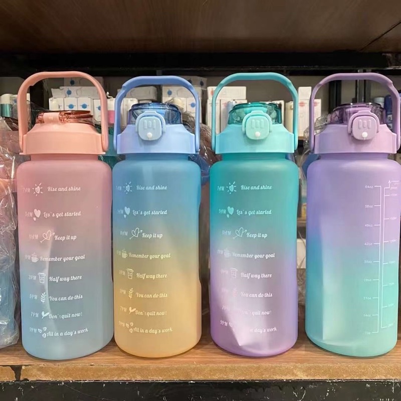 Garrafa de Água 2 L, 1L Degradê c/ Adesivos Fofo 3D e 2D Colorido com Frases Motivacionais e Alça com suporte de Celular Squeeze Garrafinha 750ml com Bico ou Canudo para Beber Academia Caminhada e Passeios Portátil