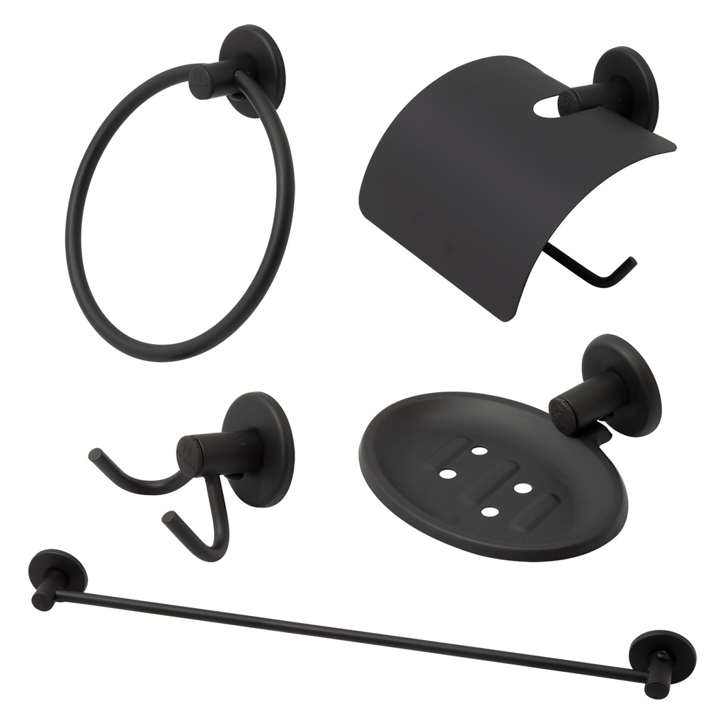 Kit Acessórios Para Banheiro Aço Inox 5 Peças Preto Fosco Conjunto Porta Toalha Banho Rosto Papeleira Papel Higiênico Saboneteira Sabonete Cabide 2 Ganchos