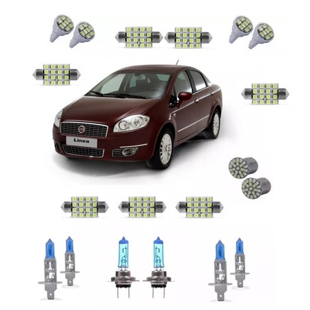 Kit Lampada Super Branca E Led's Farol + Milha Fiat Linea
