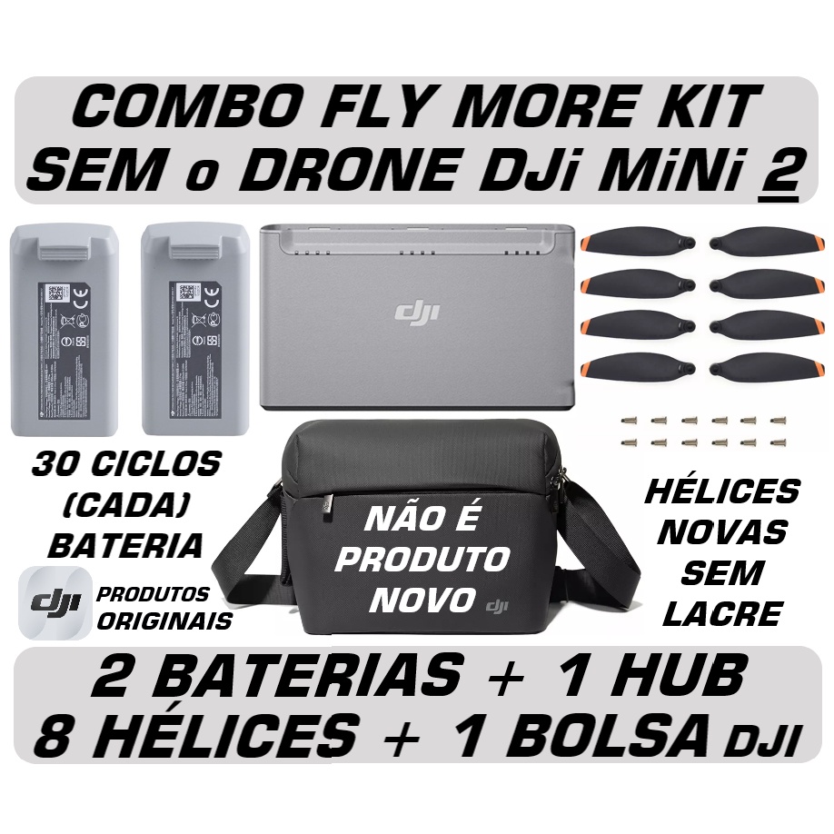 1 Combo Fly More Kit Drone Dji Mini 2 Baterias / Dji Mini SE / 1 Bolsa 8 Hélices + 1 Hub Carregamento Dock Estação de Carga