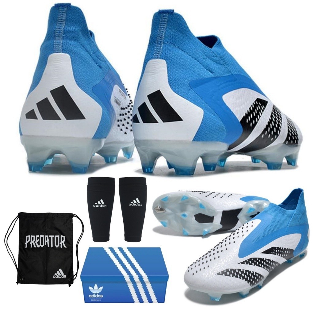 Novo Estilo PREDATOR PREDATOR BOTAS ACURACY Branco Azul Malha Cheia Do Laço BOOTS Grátis HighTop Futebol B OOTS
