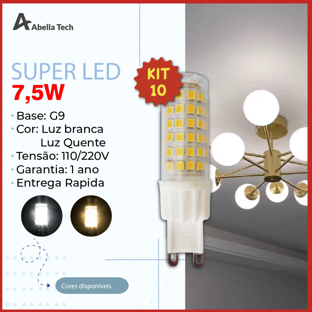 Kit 10 Lâmpada Led 7W G9 Halopin 110V / 220V | Branco Quente 3000K (Amarelo) / Branco Frio 6500K (Branco) Luz Bipino | Arandelas e Decoração